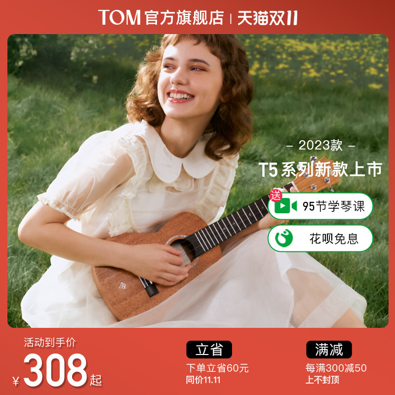 券 10元销量300TOM T5S单板尤克里里初学者23寸男女款小吉他