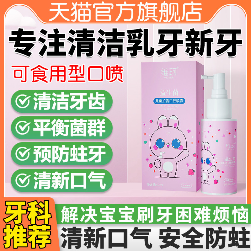 券 3元销量2儿童口腔清洁喷雾益生菌护刷牙齿防蛀牙口气清新剂宝宝口喷漱口水