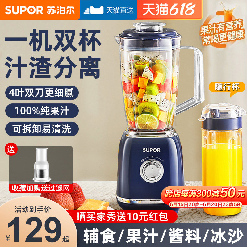 券 20元销量600苏泊尔榨汁机家用水果全自动多功能便携式料理机小型炸汁杯果汁机