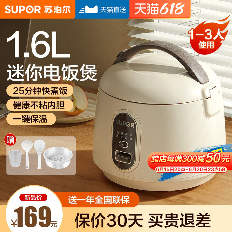 券 30元销量100苏泊尔电饭锅家用小2一3人迷你小型多功能智能全自动宿舍饭煲1.6L