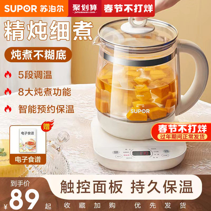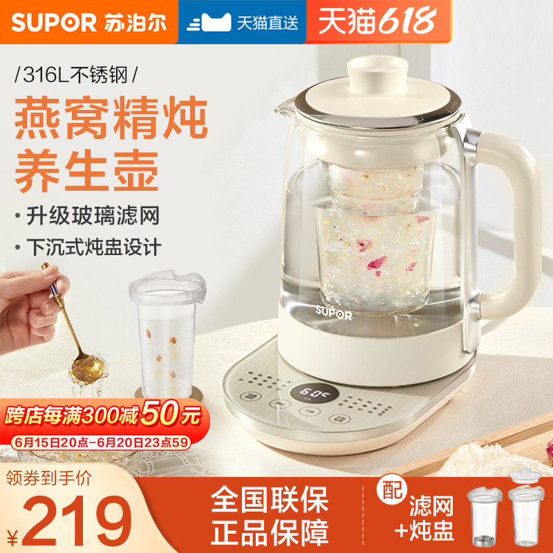 券 60元销量300苏泊尔养生壶家用多功能全自动煮茶器2022新款烧水一体炖煮花茶壶