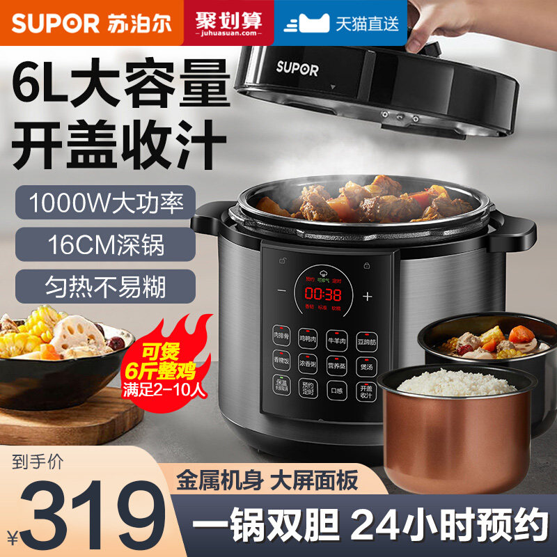 券 20元销量100苏泊尔电压力锅家用6L大容量双胆智能预约多功能高压饭煲官方正品