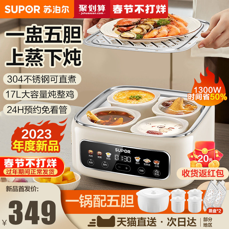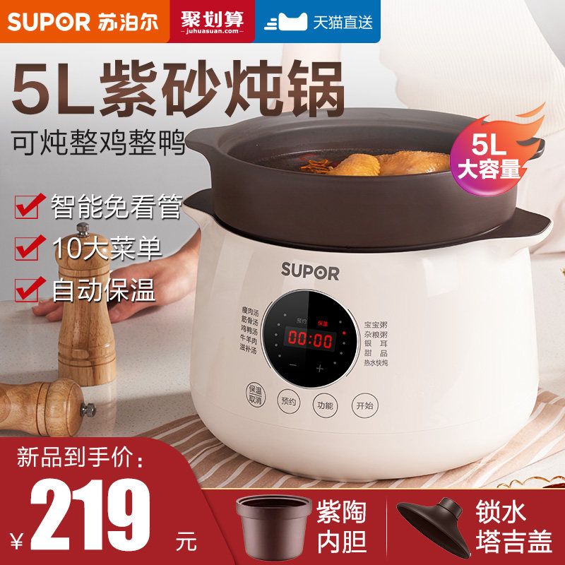 券 10元销量500苏泊尔电炖锅家用煲汤紫砂锅5L全自动电砂锅煲汤炖汤锅多功能炖锅