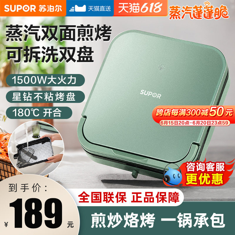 券 60元销量100苏泊尔电饼铛家用双面加热加深大烙饼锅煎烤盘锅可拆洗火锅煎烤机