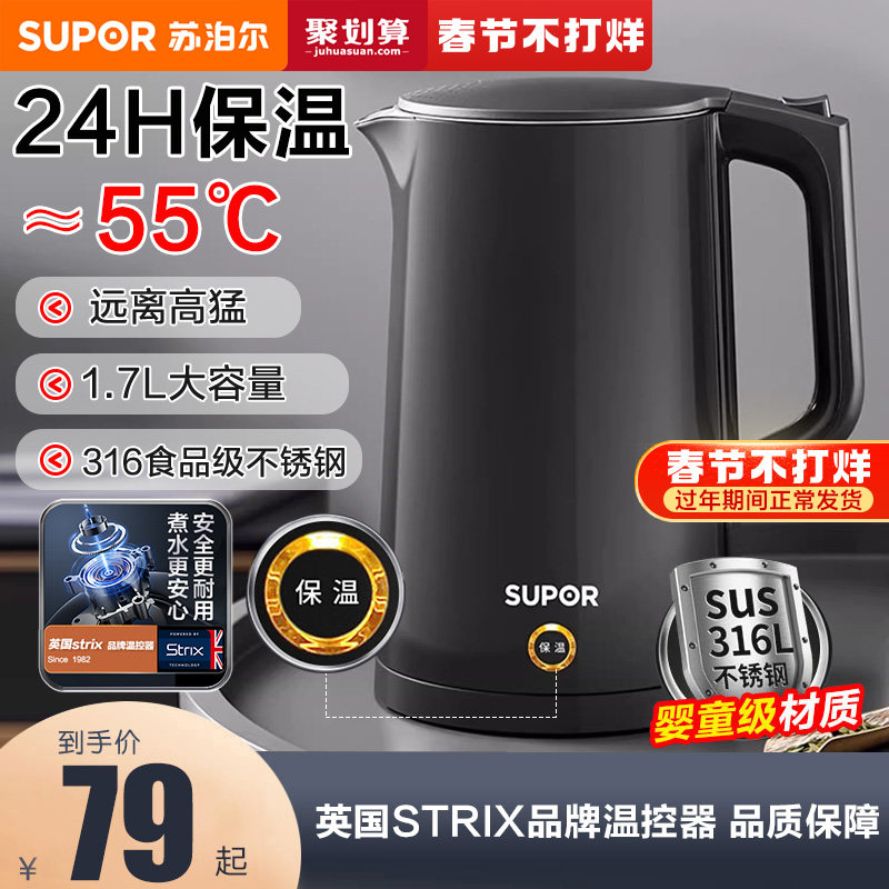 券 20元销量100苏泊尔烧水壶电热水壶保温一体316不锈钢智能恒温自动家用开水壶
