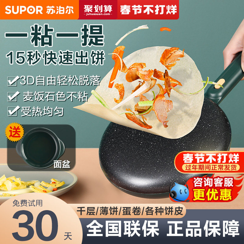 券 1元销量1000苏泊尔薄饼机家用春卷皮春饼机烙饼神器迷小型摊博饼电饼铛煎饼锅