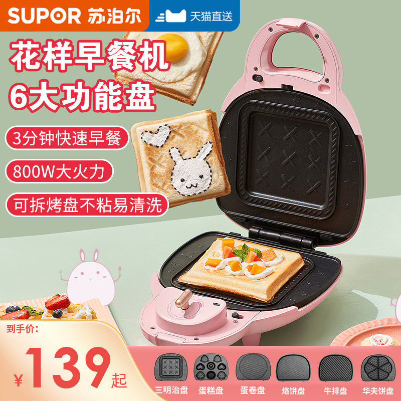 券 171元销量4000苏泊尔可拆三明治早餐机轻食机多功能家用定时小型面包机华夫饼机