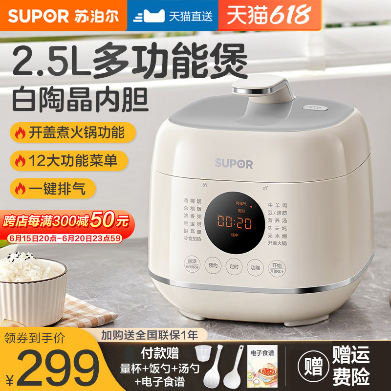 券 10元销量100苏泊尔电压力锅家用2-3人小型迷你多功能全自动智能高压饭煲正品