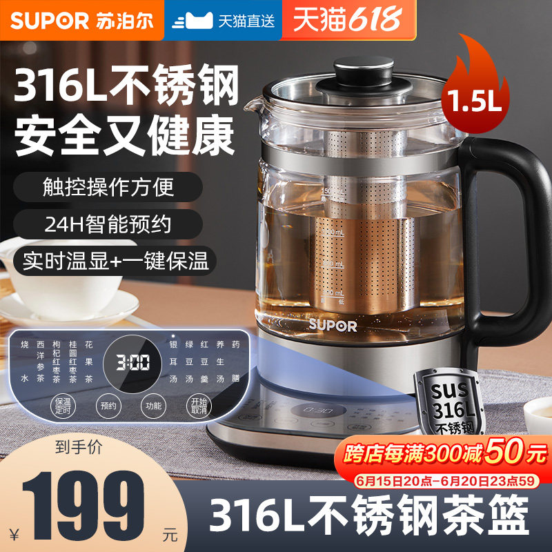 券 60元销量200苏泊尔养生壶家用多功能316L不锈钢全自动泡茶煮茶器花茶壶煮茶壶