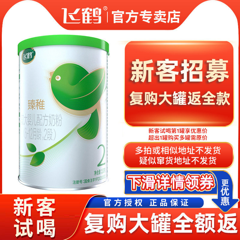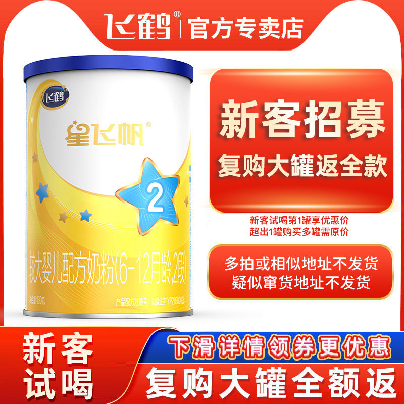 券 40元销量84咨询优惠【回购大罐退全款】飞鹤星飞帆2段6-12个月罐装奶粉130g