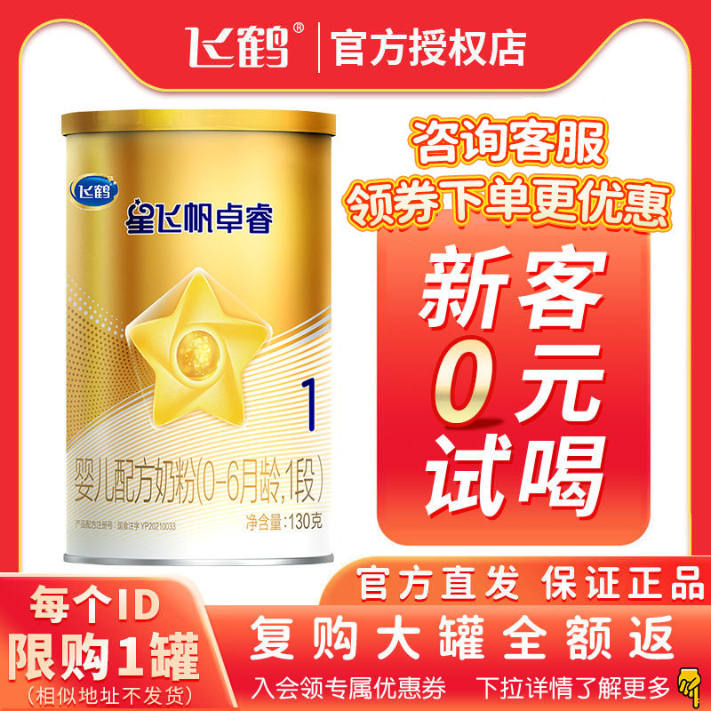 券 27元销量2【新鲜日期】飞鹤星飞帆A2 128g试喝装1段婴儿配方牛奶粉0-6个月