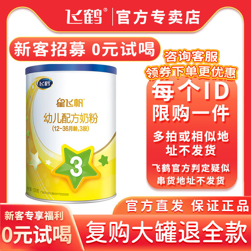 券 10元销量100【回购大罐退全款】飞鹤奶粉星飞帆3段(12-36个月)罐装奶粉130g