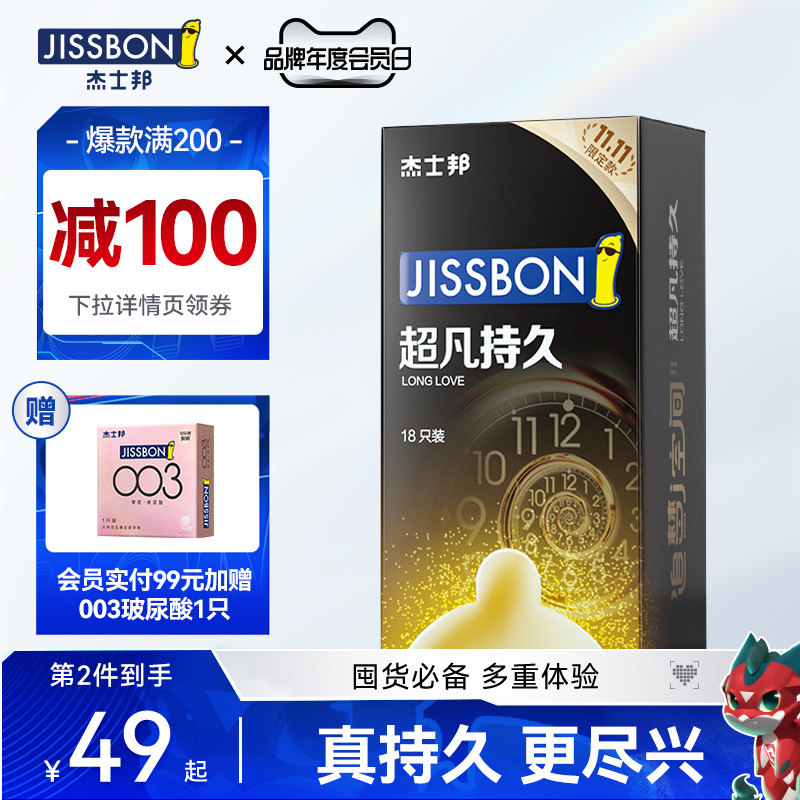 券 20元销量600【超凡持久限定装】杰士邦避孕套持久装防早泄延时安全套旗舰店