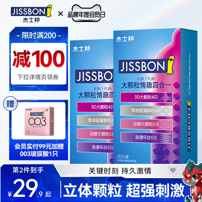 券 20元销量2000【超凡持久颗粒】杰士邦避孕套延时装防早泄安全套官方正品旗舰店