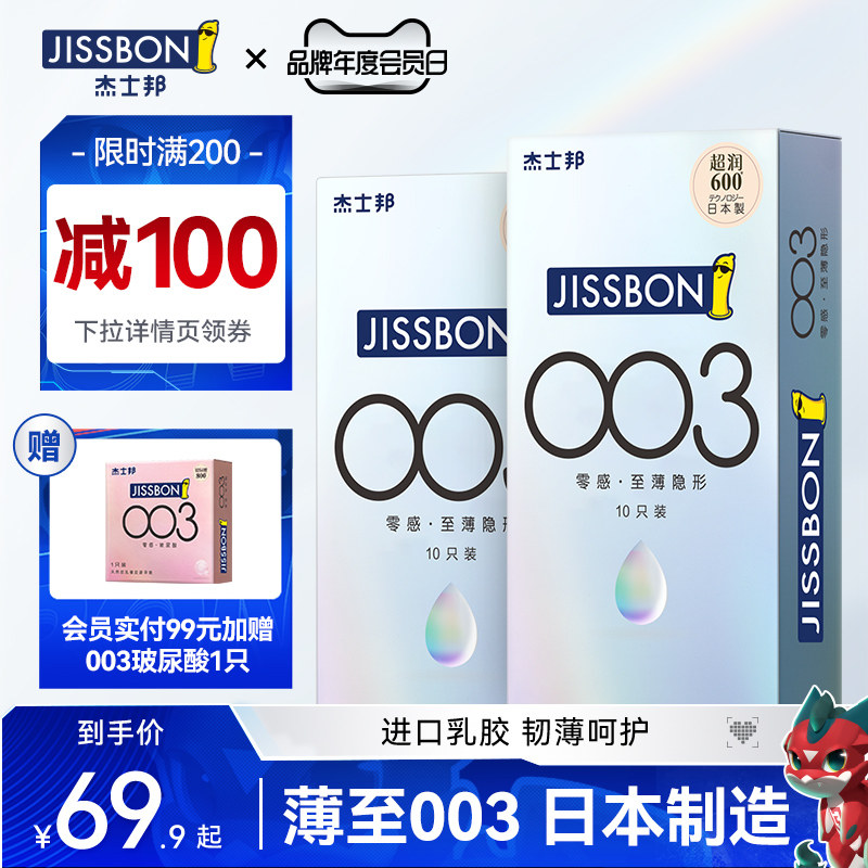 券 60元销量8452杰士邦旗舰店003玻尿酸避孕套超薄安全套男女士专用官方正品裸入1