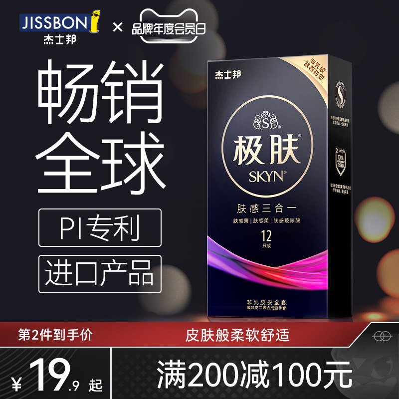 券 20元销量2000杰士邦SKYN极肤玻尿酸避孕套男用超薄安全套官方旗舰店正品非乳胶