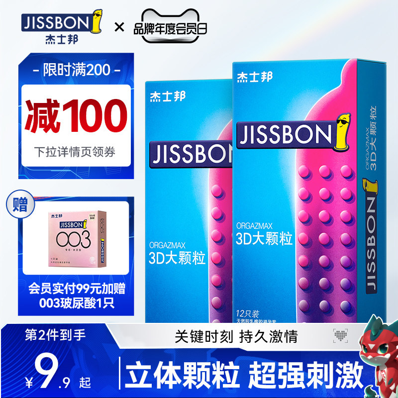 券 10元销量2000【3D大颗粒】杰士邦避孕套男用超薄裸入安全套带刺官网旗舰店正品