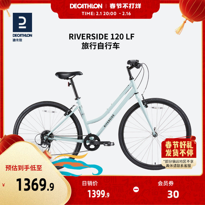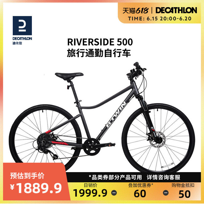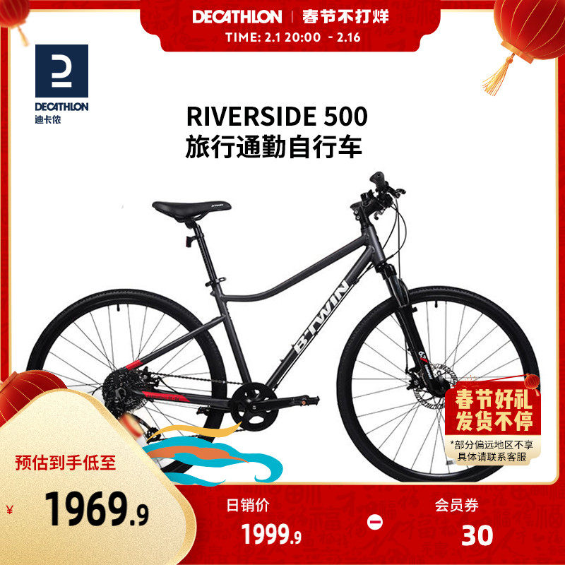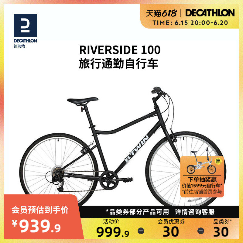 券 30元销量65迪卡侬RIVERSIDE500公路旅行休闲通勤女男自行车OVB1