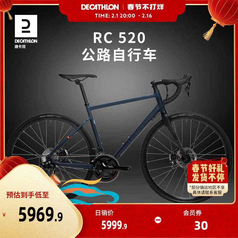 券 30元销量10迪卡侬RC520碳纤维前叉碟刹弯把竞速禧玛诺超快铝公路自行车OVB1