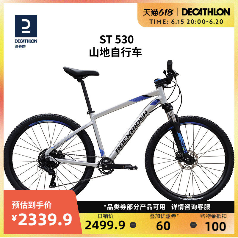 券 30元销量36迪卡侬ST530山地车越野自行车单盘正负齿变9速油碟OVB1