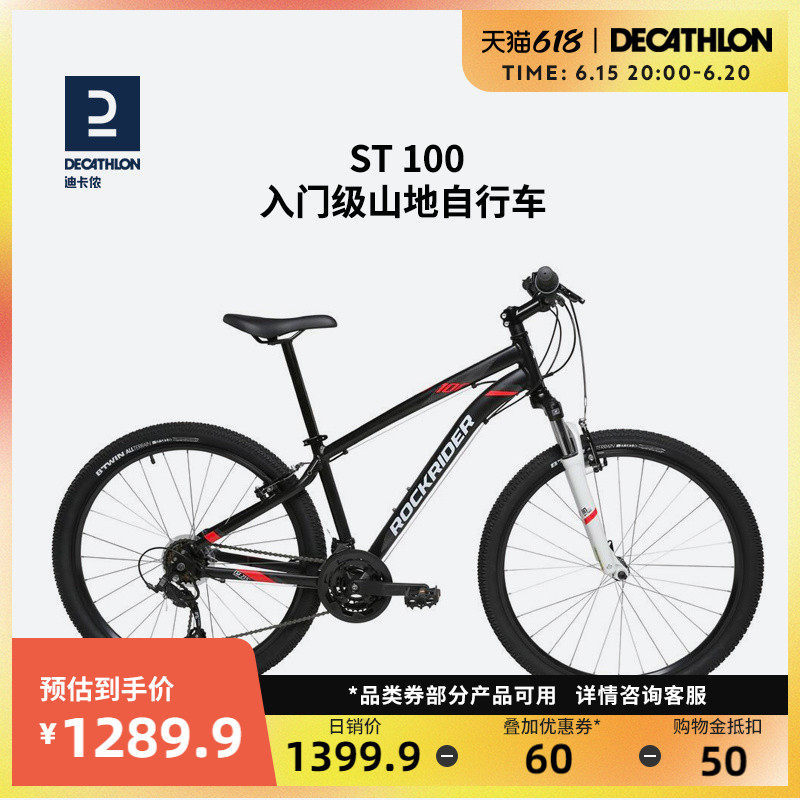 券 30元销量50迪卡侬ST100山地自行车男款成人变速越野学生铝合金车架单车OVMC