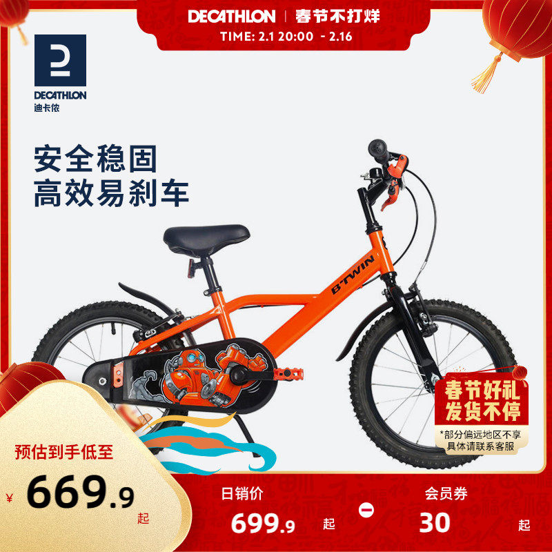 券 30元销量500迪卡侬旗舰店儿童自行车16寸单车男孩宝宝女孩童车脚踏车OVBK