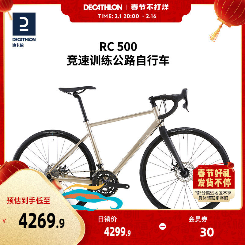 券 30元销量10迪卡侬公路车弯把竞速赛车铝碳超快超轻RC500碟刹公路自行车OVB1