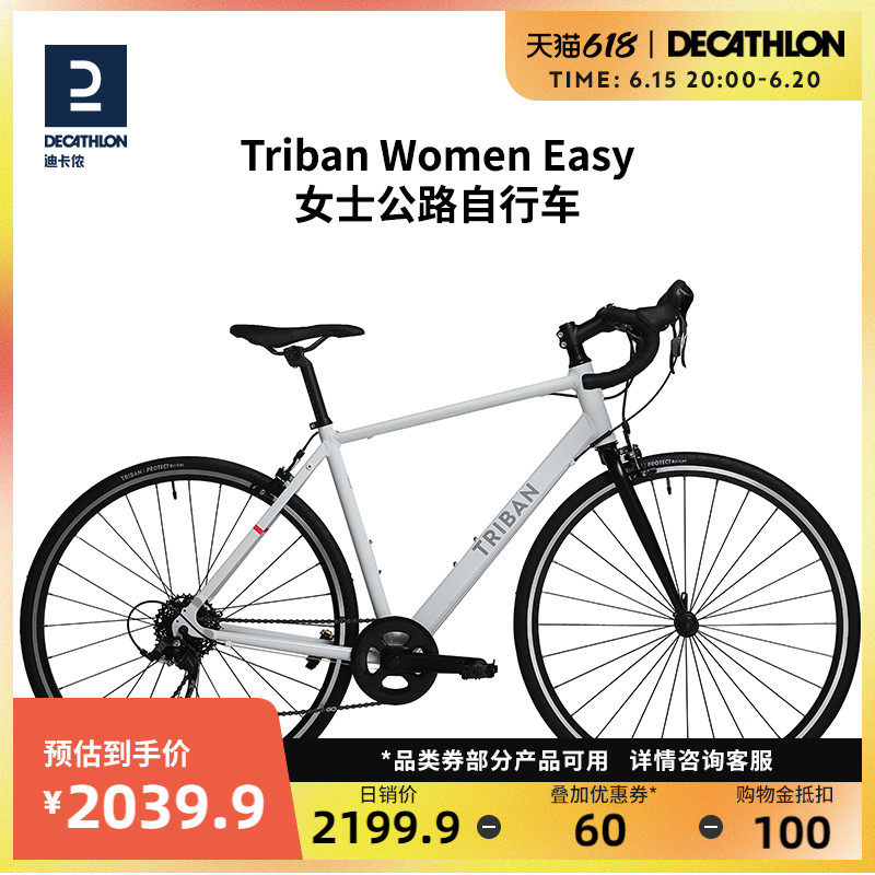 券 30元销量70迪卡侬Triban Women Easy女式公路自行车城市通勤代步超轻OVB1