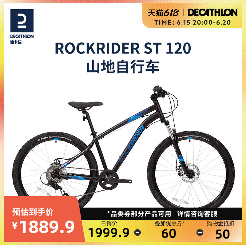 券 30元销量10迪卡侬ST120入门运动山地自行车单盘9级变速碟刹OVMC