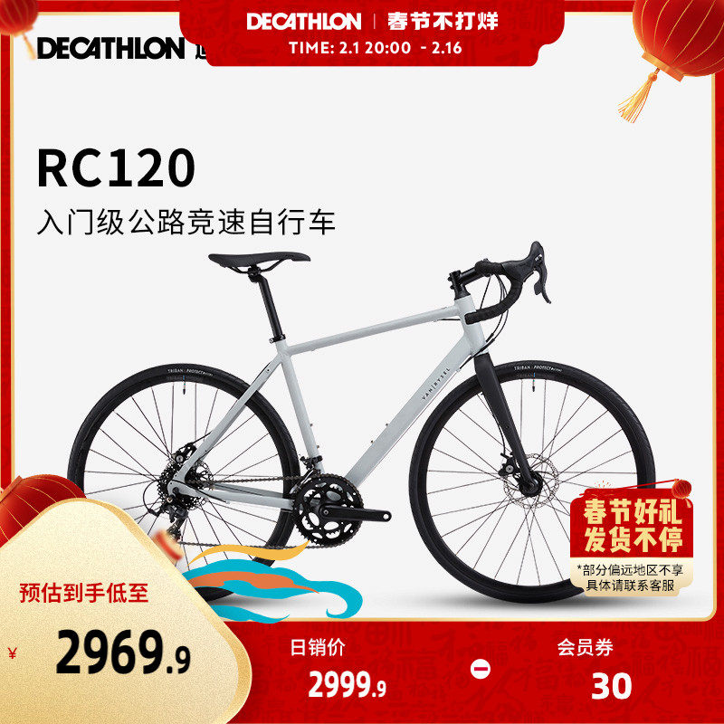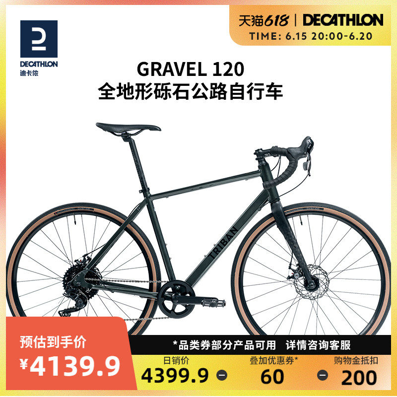 券 30元销量10迪卡侬砾石公路碟刹铝架骑行越野自行车GRAVEL120赛车男女OVB1