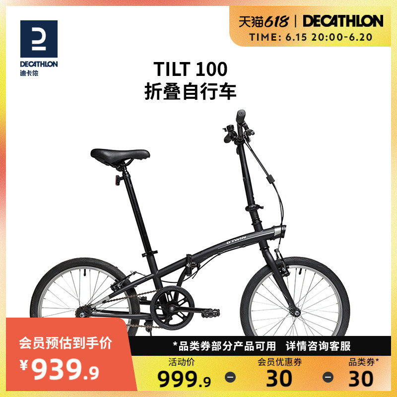券 30元销量77迪卡侬TILT100折叠车20寸男女轻便便携城市通勤上班轻量单车OVB1
