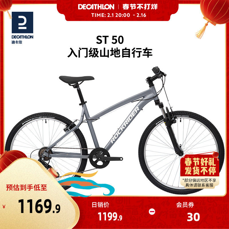 券 30元销量10迪卡侬ST50山地自行车成人通勤变速越野铝合金车架学生单车OVMC