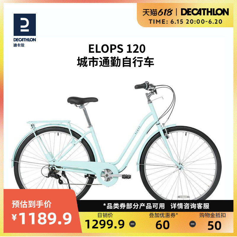 券 30元销量10迪卡侬RIVERSIDE120轻便公路旅行自行车休闲通勤女男自行车 OVB1