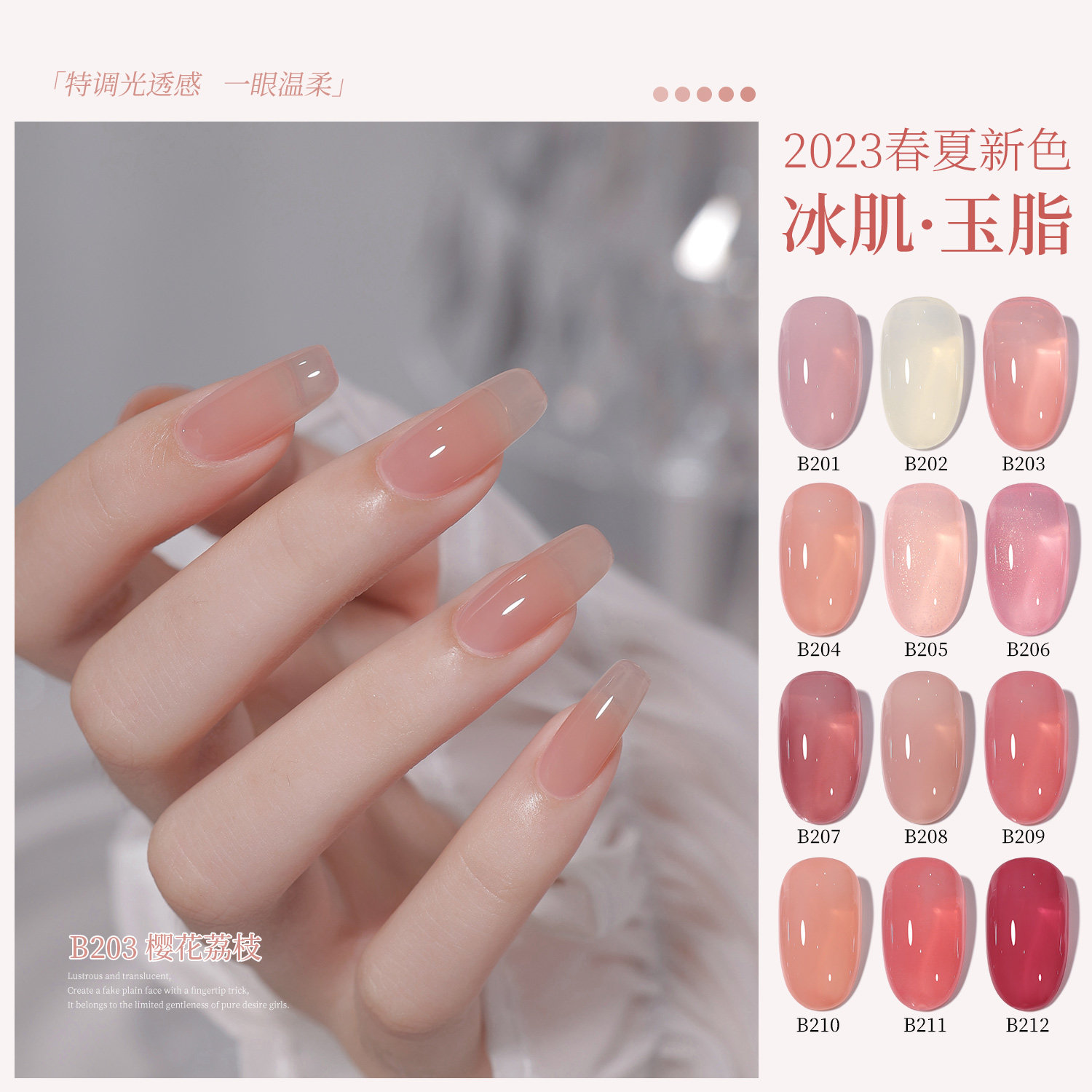 券 2元销量800BOLE搏乐裸色甲油胶2023年流行新款指甲冰透色显白果冻美甲店专用