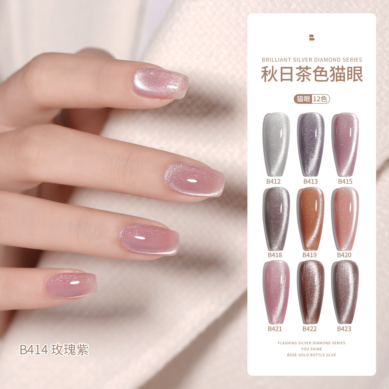 券 2元销量100BOLE搏乐秋日茶色猫眼胶2023新款网红美甲超闪冰透色碎钻指甲油胶