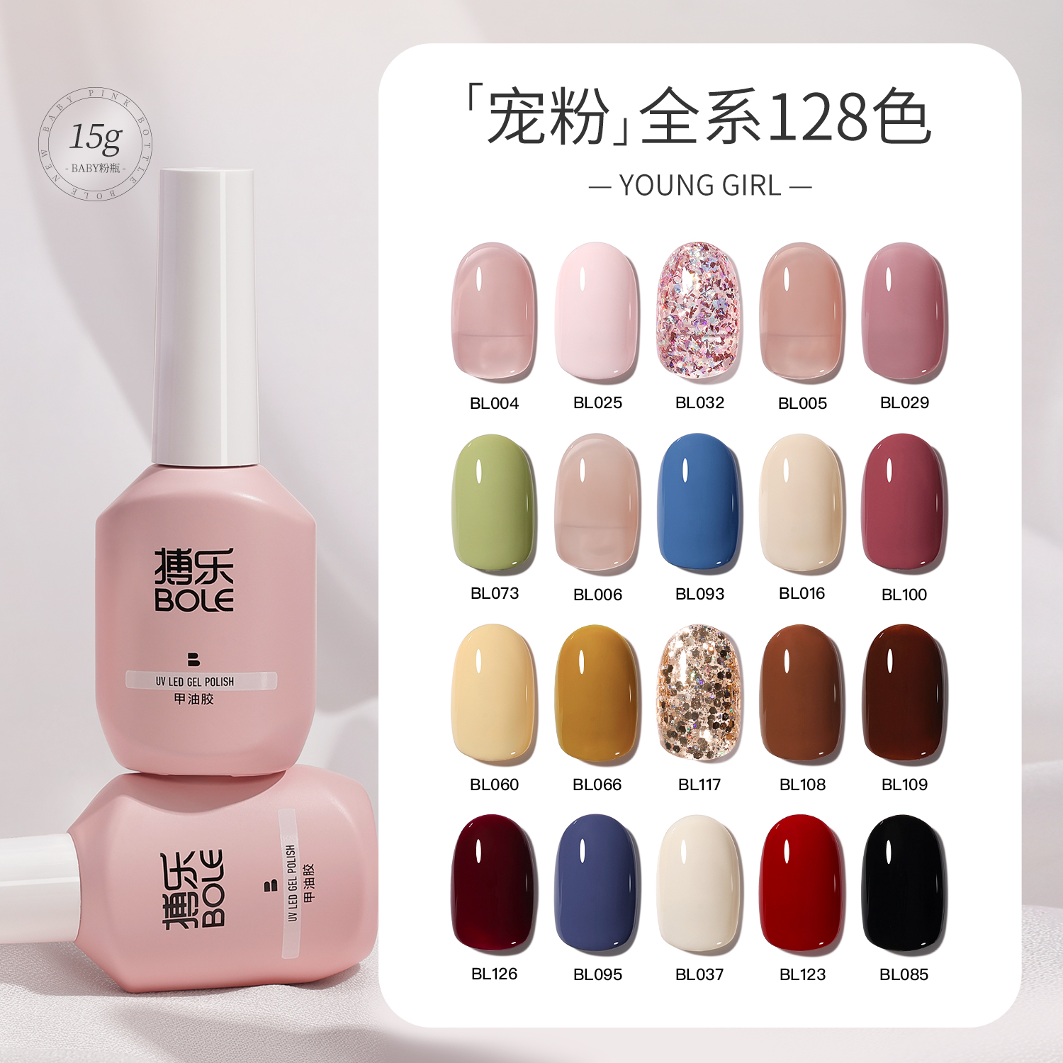 券 10元销量4BOLE搏乐粉瓶128色整套指甲油胶2024年新款色板冰透色美甲店专用