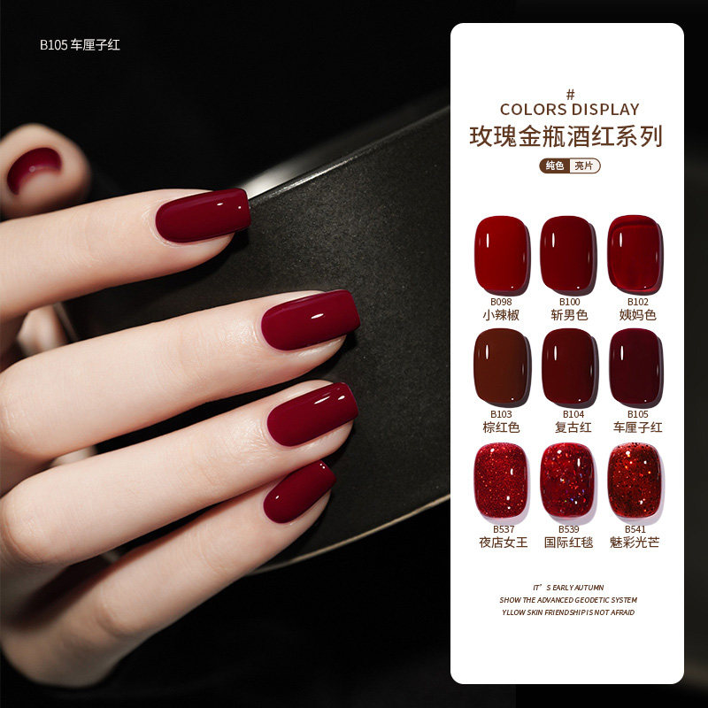 券 2元销量1000BOLE搏乐车厘子甲油胶2023年新款网红流行酒红色指甲胶美甲店专用