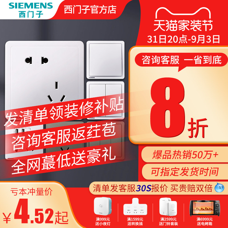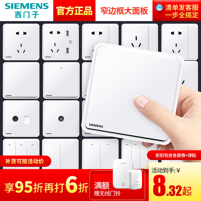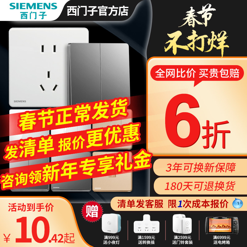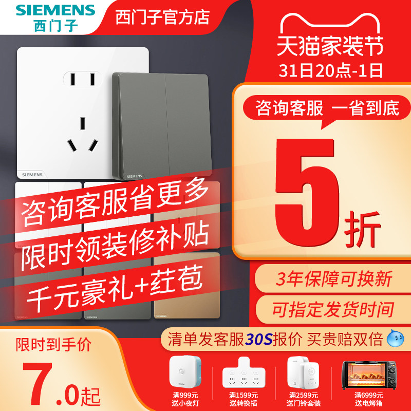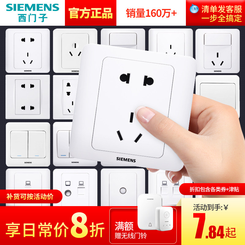 券 2元销量10西门子开关插座面板家用墙壁多孔暗装五孔空调电源全屋套餐致典