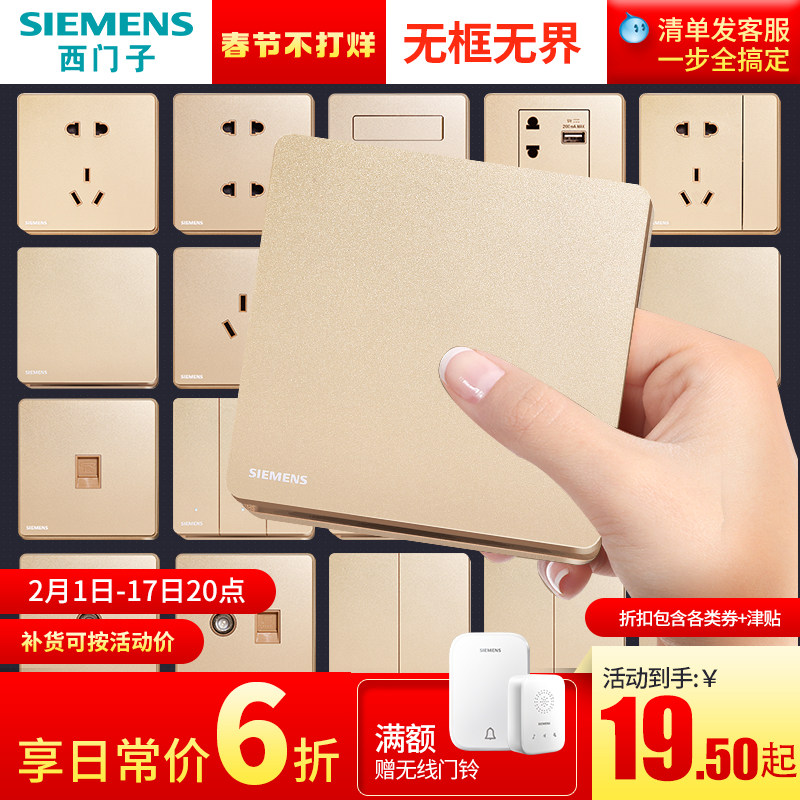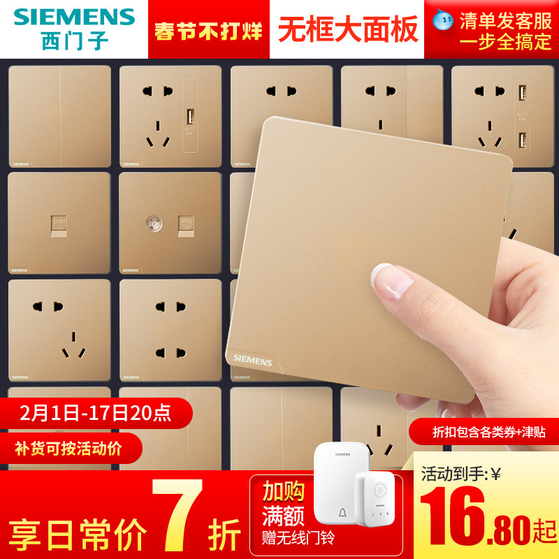 券 2元销量50西门子开关插座面板致典日曜金一开五孔16a空调家用86型带usb墙壁