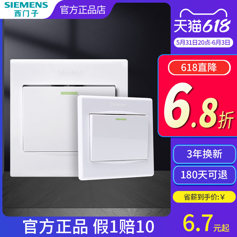 券 1元销量100西门子单开单控开关插座面板 品宜雅白家用电灯墙壁单联荧光开关