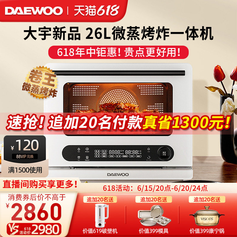 券 850元销量50大宇蒸烤箱一体机家用烤箱蒸箱台式风炉电烤箱蒸烤炸K6官方旗舰店