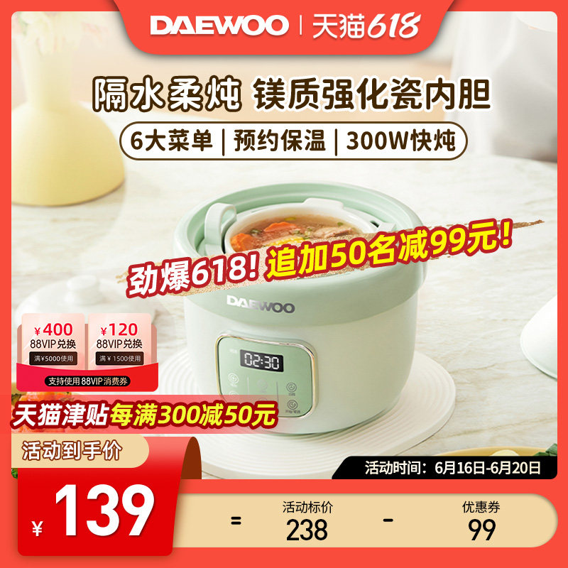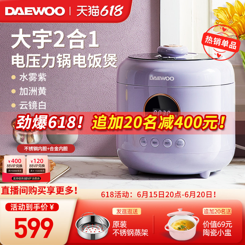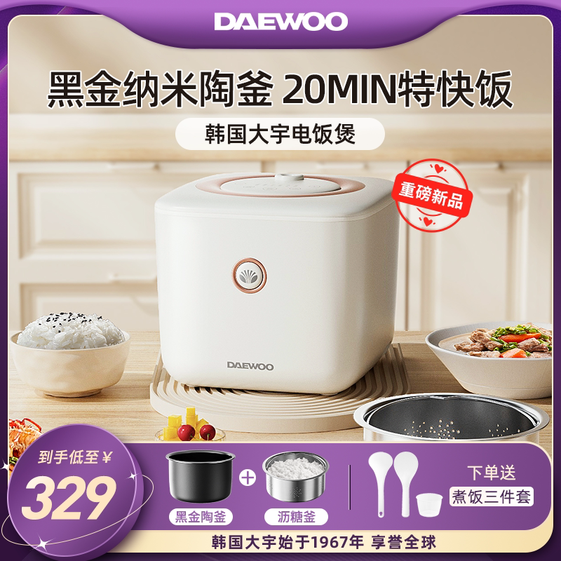 券 180元销量100韩国大宇电饭煲家用多功能3升智能快速煮粥预约1一2人4小型电饭锅