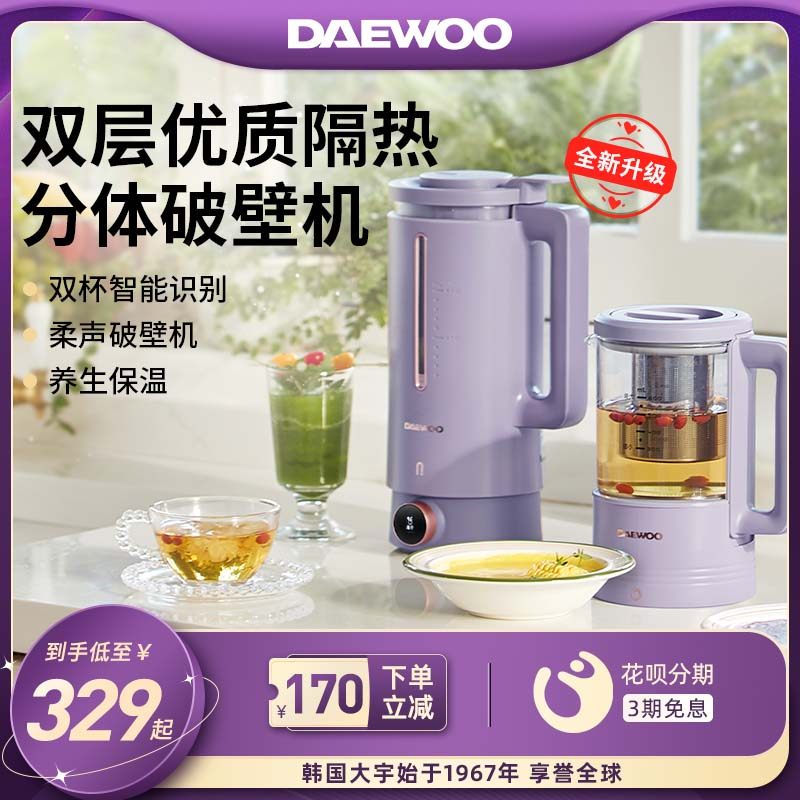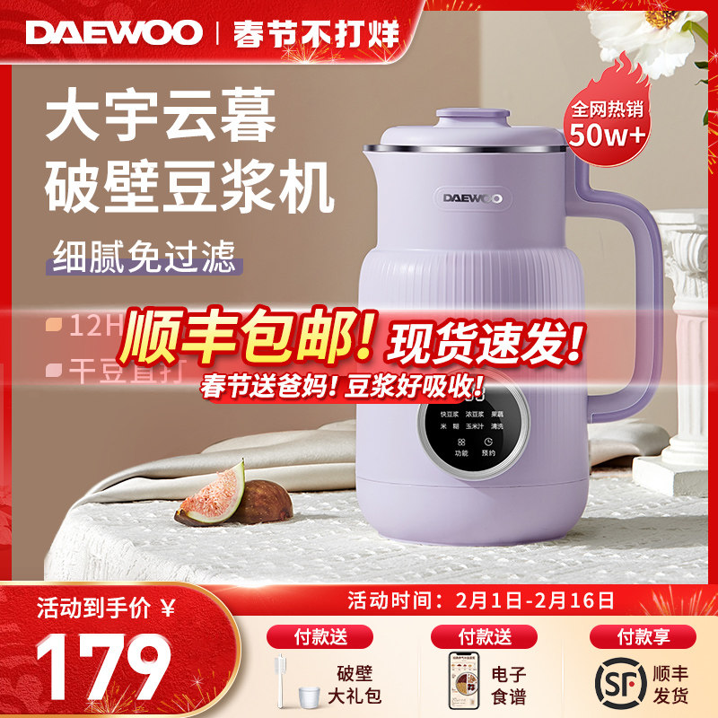 券 180元销量1000大宇破壁机家用小型非静音多功能豆浆机榨汁一体料理机双杯智能