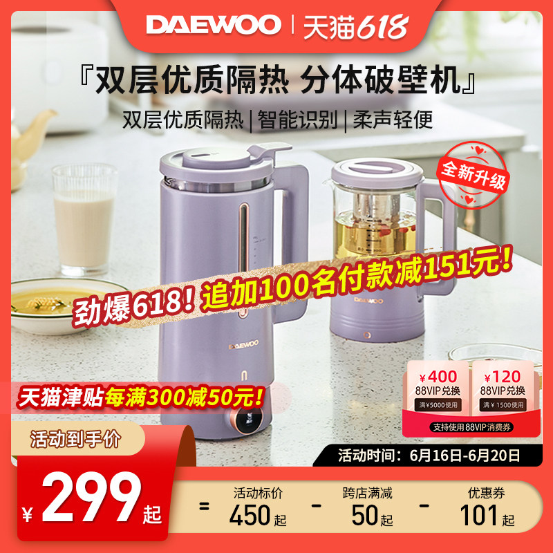 券 120元销量50大宇破壁机家用小型非静音多功能豆浆机榨汁一体料理机双杯智能