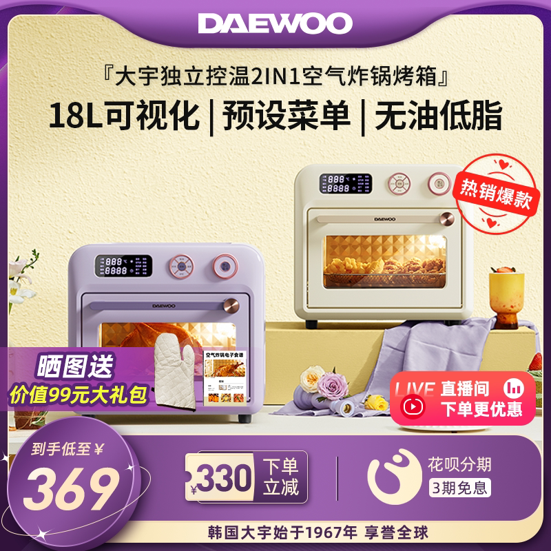 券 210元销量100大宇空气炸锅烤箱一体机家用新款小型多功能智能电烤箱炸锅二合一