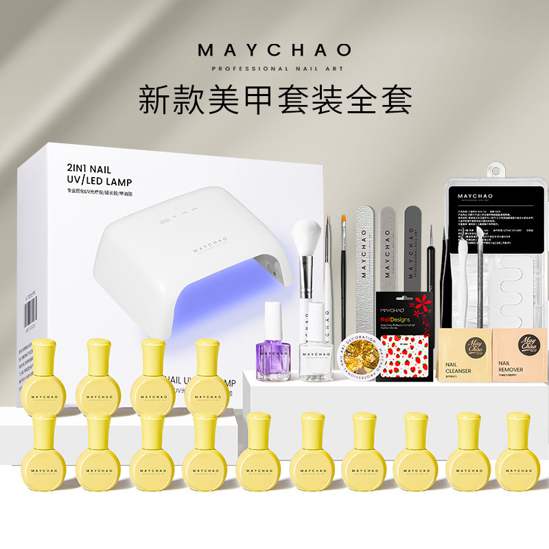 券 5元销量10美潮美甲套装全套工具初学者新手家用做指甲油胶光疗机烤灯美甲灯