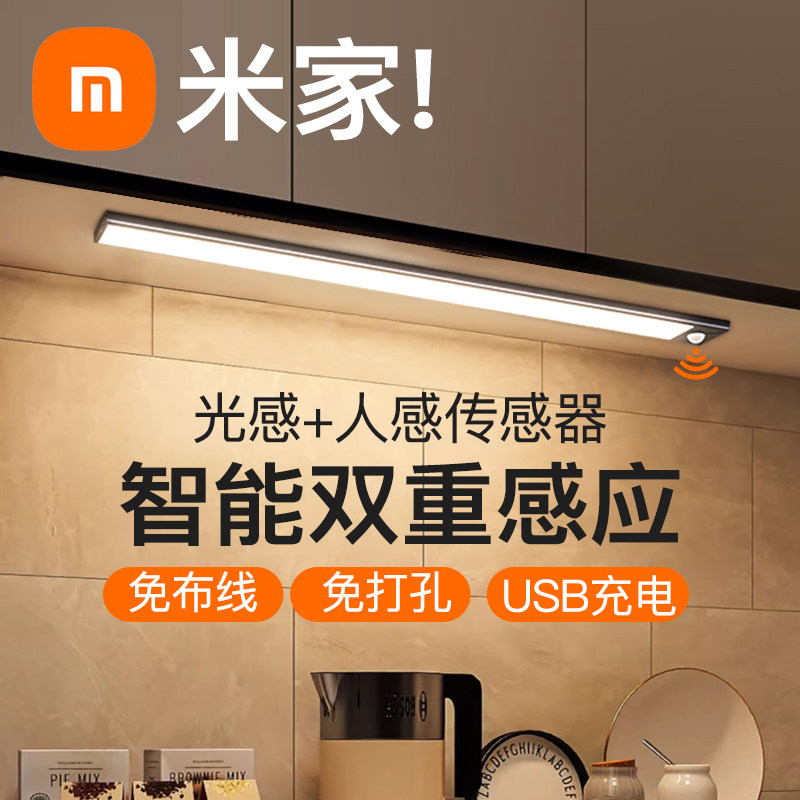 券 20元销量50人体感应橱柜LED灯智能无线充电灯条自粘厨房衣柜酒柜灯小米色家
