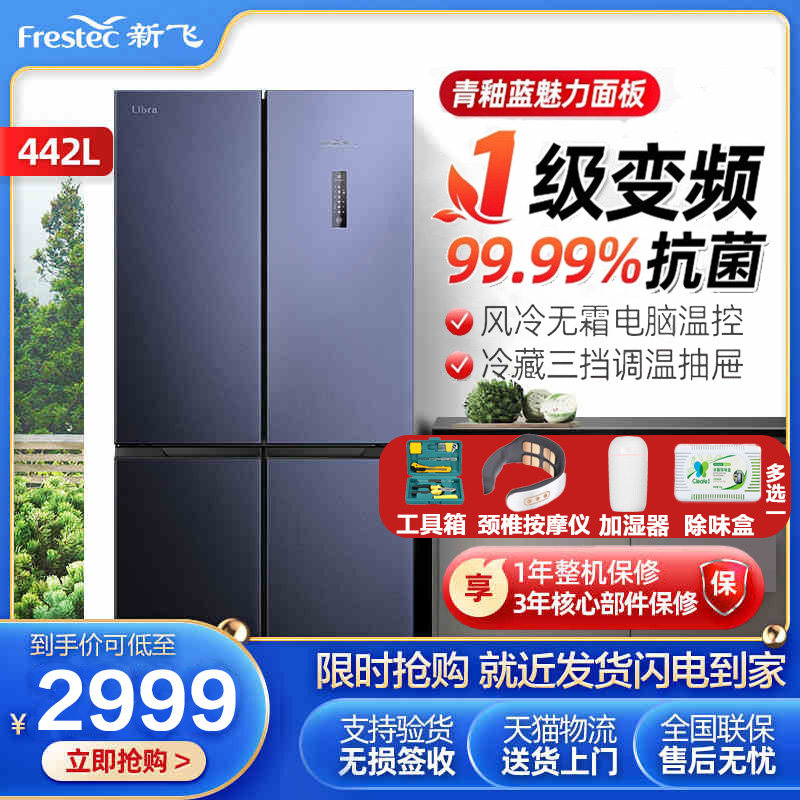 券 20元销量0新飞442升十字对开门风冷无霜一级家用节能双开门4四开门电冰箱