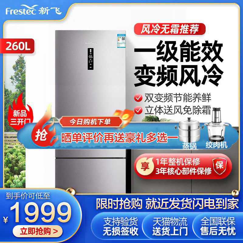 券 20元销量0新飞260升三门冰箱家用一级能效变频风冷无霜小型三开门电冰箱