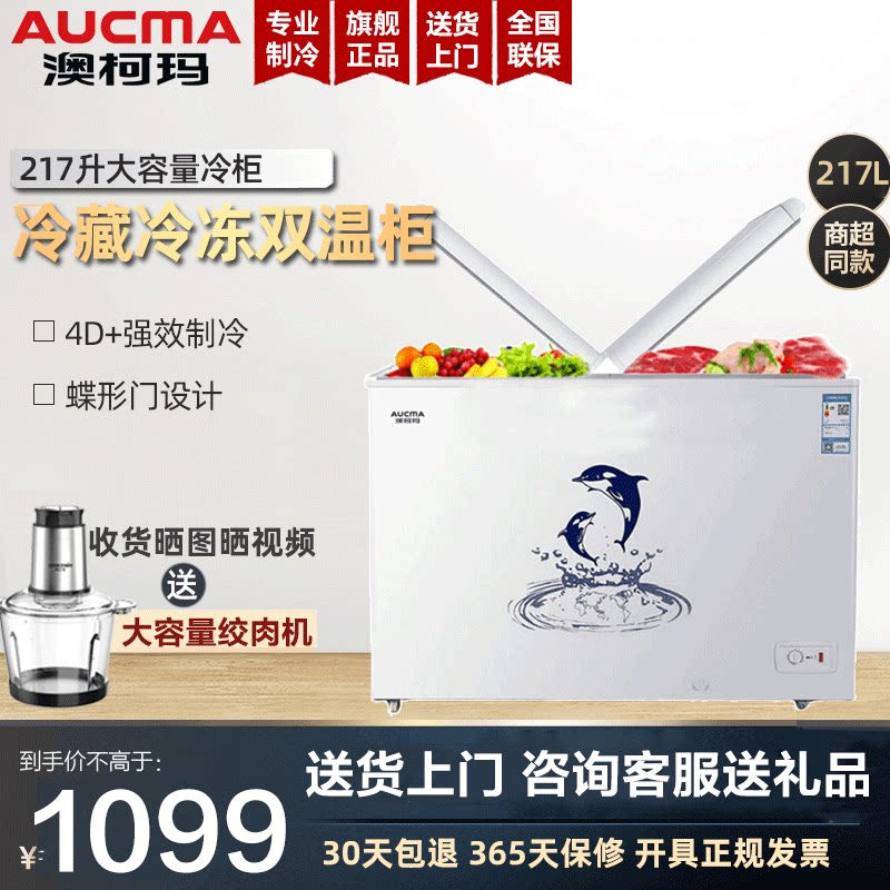 券 20元销量0澳柯玛冰柜冷柜冰箱217升家用小型冷藏冻两用蝶门顶开式冷饮卧式